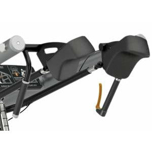 The fingertip adjustment is easy to use and covers a range of five starting positions to accommodate a variety of users. The shoulder pads are shaped and angled to more comfortably fit the user, allowing them to pivot with the user and enabling exercisers to maintain their position throughout the range of motion instead of chafing under load.